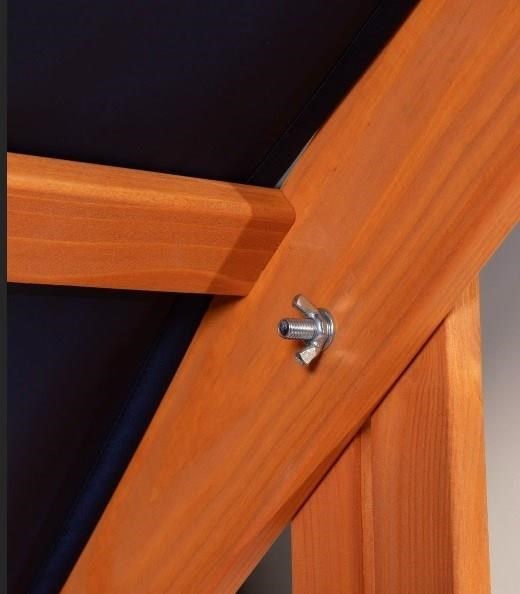 - płócienny daszek z drewnianą konstrukcją