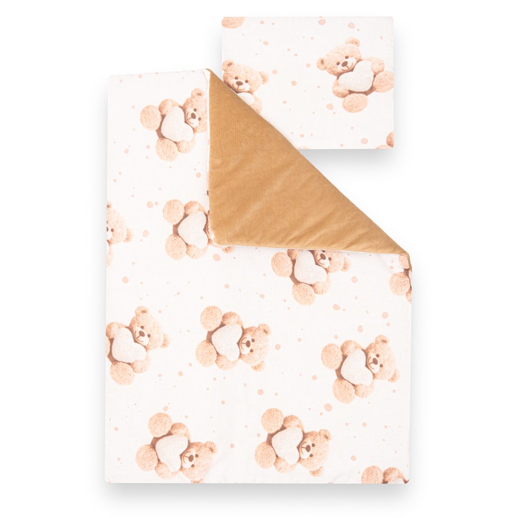 Dwustronny Zestaw z Velvet i bawełny do wózka New Baby Love Teddy Bear beige