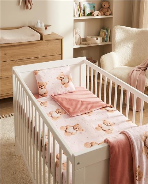 Dwustronny Zestaw z Velvet i bawełny do wózka New Baby Love Teddy Bear pink