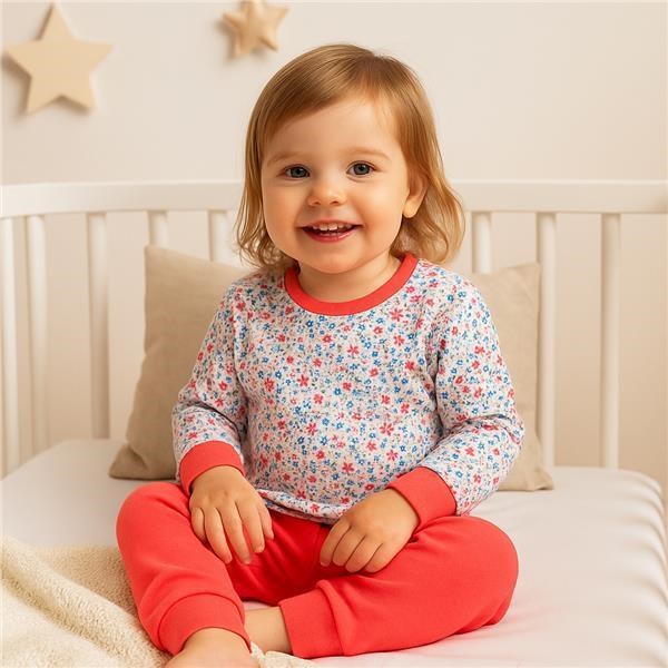 Piękne i praktyczne bawełniane piżamko New Baby. Piżamko z uroczym dziecięcym motywem składa się z koszulki z długim rękawem i spodni. Bawełniana koszulka jest bardzo wygodna, ponieważ jest wykonana z wysokiej jakości bawełny, bez zapięć, z delikatnym obszyciem wokół szyi. Obszycie nie powinno uciskać, ani przylegać, a koszulka powinna łatwo się zakładać przez głowę. Spodnie mają przyjemne obszycia na nogawkach i w pasie elastyczne obszycie z gumką, która nie uciska. Użycie wysokiej jakości materiałów i przyjemny krój zapewniają maksymalny komfort, stałość kształtu i łatwość w utrzymaniu. Dla dzieci piżama jest o wiele bardziej odpowiednia niż koszula nocna, ponieważ podczas snu dzieci często się wiercą, odkrywają i wtedy mają zimne stopy i plecy. Piżama skutecznie temu zapobiega. Skład: 100% bawełna. OEKO-TEX STANDARD 100.