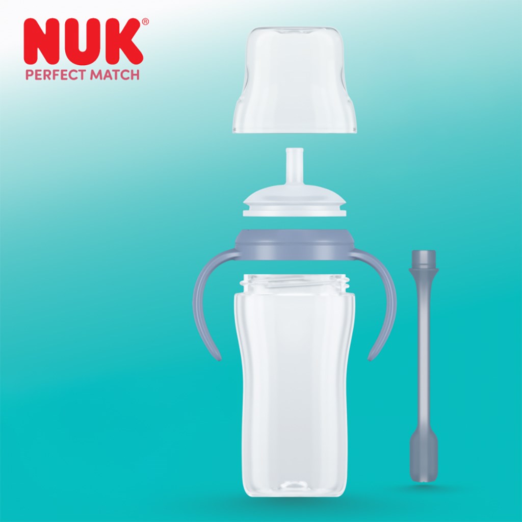 Jako część systemu NUK Perfect Match butelka jest w pełni kompatybilna z innymi butelkami i akcesoriami z tej serii, oferując elastyczność rosnącą wraz z dzieckiem.