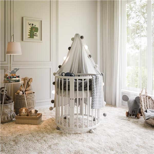 Mini okrągłe łóżeczko (O 70 cm) – idealne dla noworodków, tworzy przytulną i bezpieczną przestrzeń.