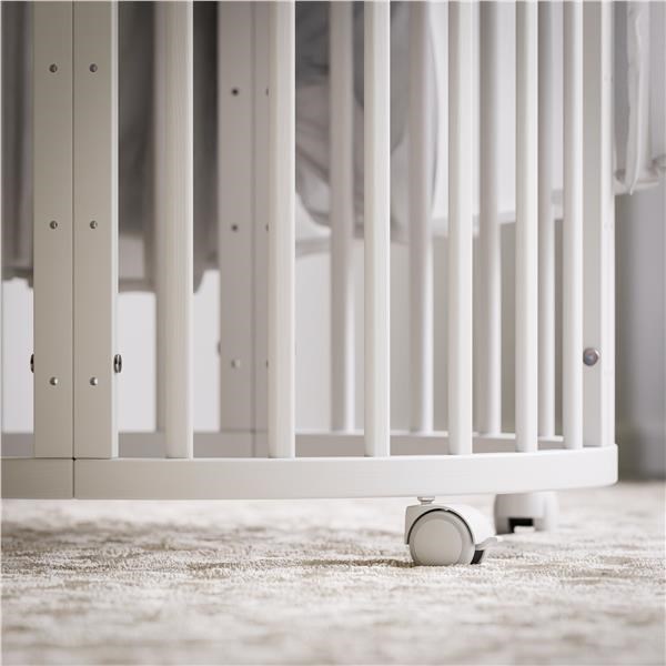 Łóżeczko można przekształcić w kojec. Zaokrąglone krawędzie wspierają naukę wstawania i raczkowania.