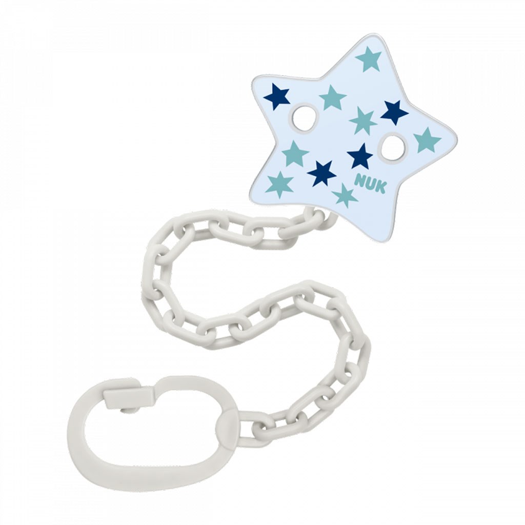 Klips do smoczka NUK. Chroni przed upadkiem smoczka. Pozwala zachować smoczek czysty i gotowy do użycia. Specjalnie zaprojektowany bezpieczny klips umożliwia przypięcie łańcuszka do ubrania dziecka. Prosty w użyciu, wykonany z bezpiecznych i trwałych materiałów. Przeznaczony dla dzieci od urodzenia.