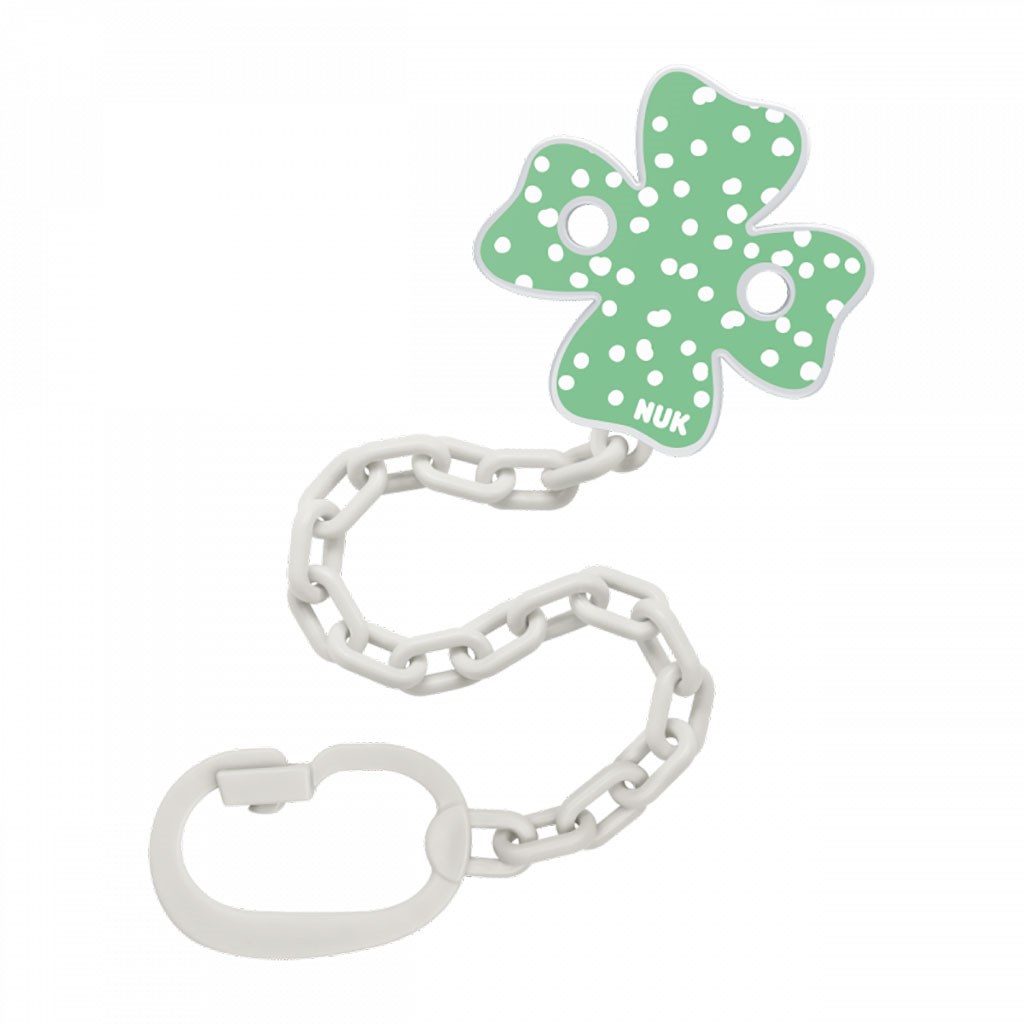 Klips do smoczka NUK. Chroni przed upadkiem smoczka. Pozwala zachować smoczek czysty i gotowy do użycia. Specjalnie zaprojektowany bezpieczny klips umożliwia przypięcie łańcuszka do ubrania dziecka. Prosty w użyciu, wykonany z bezpiecznych i trwałych materiałów. Przeznaczony dla dzieci od urodzenia.