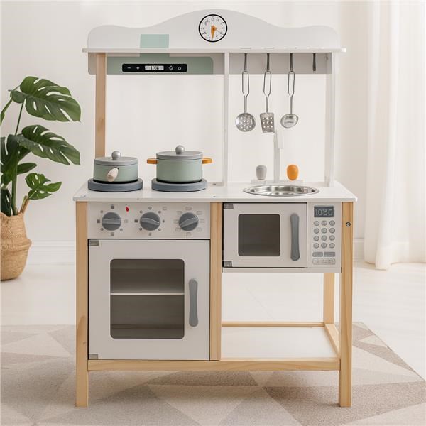 Kuchnia dla dzieci Baby Mix to piękna i stylowa drewniana zabawka, która zamieni każdy pokój w małe królestwo kulinarne. Dzięki nowoczesnemu wzornictwu w kolorze białym, realistycznym detalom i wysokiej jakości wykonania jest idealnym wyborem dla dzieci, które uwielbiają zabawy w odgrywanie ról, gotowanie i naśladowanie dorosłych.