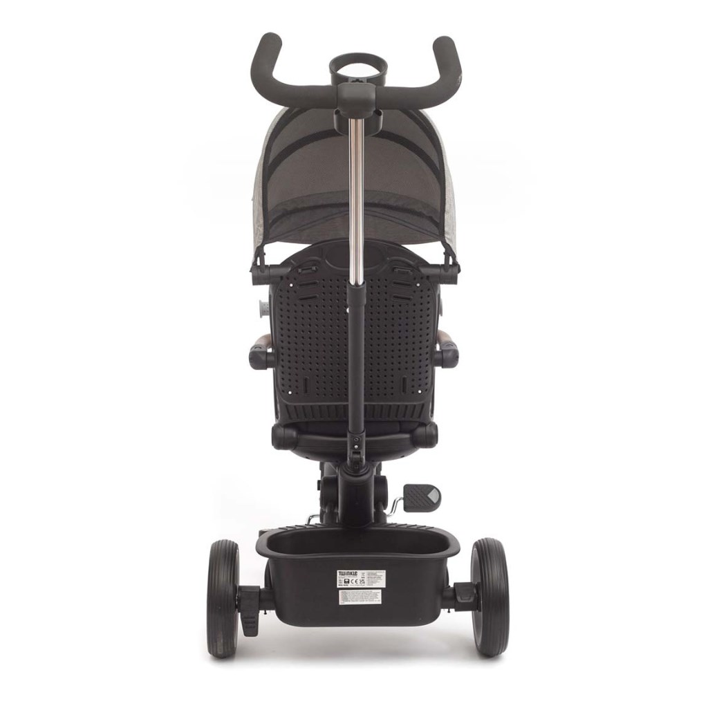 Rowerek trójkołowy Twinkle to połączenie komfortu wózka z funkcjonalnością rowerka – stworzony z myślą o dzieciach od 12. miesiąca życia. Dzięki obracanemu o 180° siedzisku maluch może podróżować zarówno przodem, jak i tyłem do kierunku jazdy.