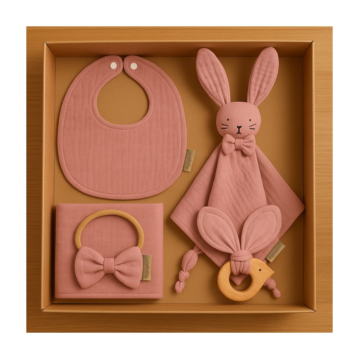 Muślinowy zestaw prezentowy dla dzieci New Baby różowy