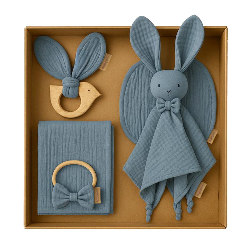 Muślinowy zestaw prezentowy dla dzieci New Baby szary