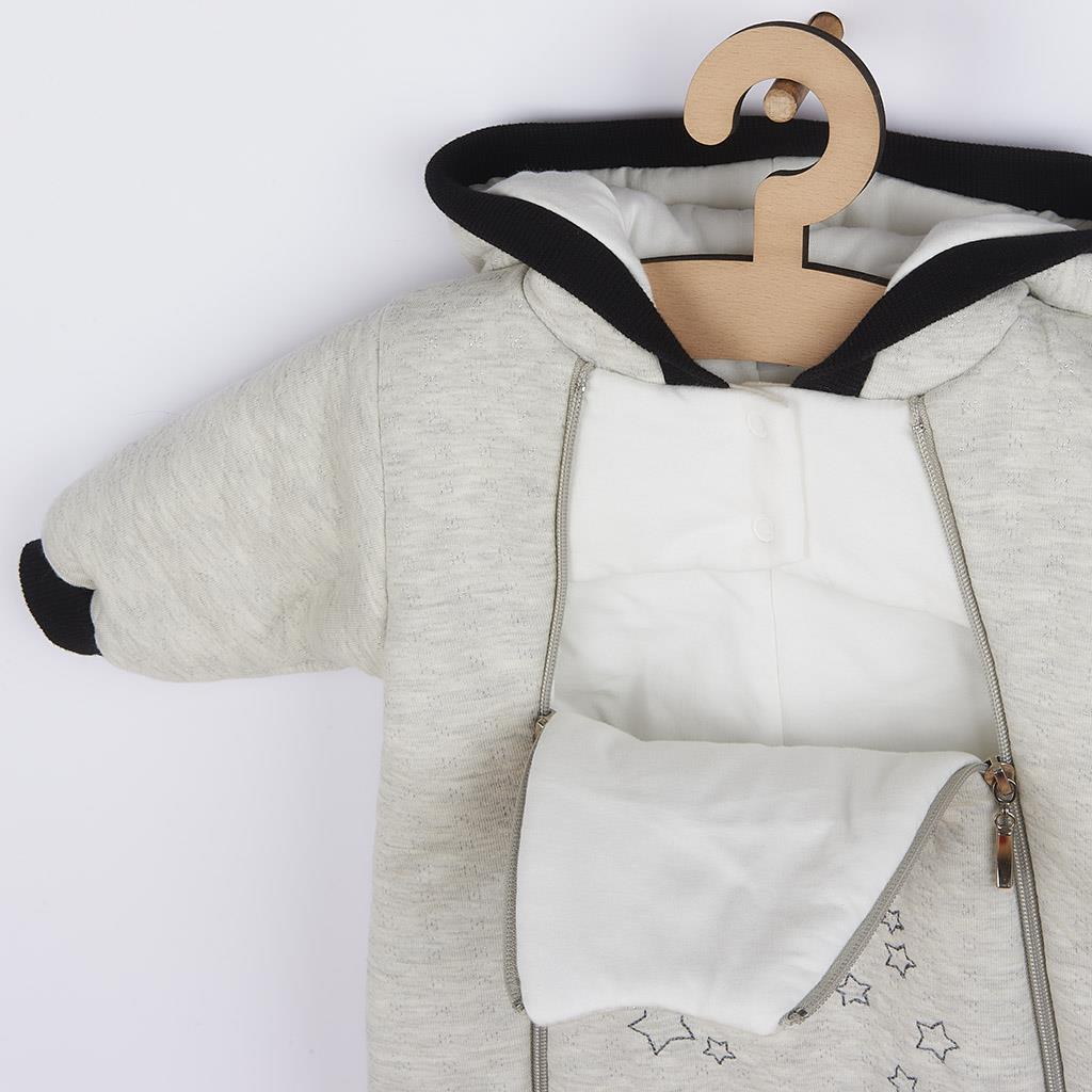 Stylowy i jednocześnie praktyczny kombinezon zimowy dla niemowląt z kapturem, Koala Star Vibes. Ocieplany zimowy kombinezon wykonany jest z wysokiej jakości materiału, który zapewni Twojemu dziecku ciepło i wygodę. Zapięcie po bokach na 2 zamki błyskawiczne ułatwi ubieranie i przewijanie. Kombinezon jest w całości podszyty bawełnianą podszewką. Jest ona ważną częścią garderoby. Zwiększa trwałość ubrania i decyduje o tym, jak dziecko będzie się w nim czuć. Podszewka jest gładka, przewiewna, przyjemna w dotyku a jednocześnie podnosi komfort noszenia. Ponadto kombinezon wypełniony jest włóknem antyalergicznym, które zwiększa izolację termiczną. Idealny dla niemowląt zimą i jesienią. Stawiamy na jakość, dlatego dzięki wysokogatunkowemu materiałowi Twoje dziecko będzie się czuło w kombinezonie bardzo komfortowo. Skład: warstwa wierzchnia 77% bawełna, 20% poliester, 3% włókno lureksowe, podszewka 100% bawełna, wypełnienie z włókna antyalergicznego 100% poliester 120g / m2.