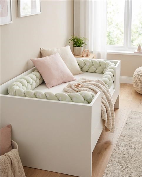 Puszysty i praktyczny pleciony warkocz New Baby jest nowoczesną alternatywą dla tradycyjnego ochraniacza nie tylko do łóżeczka dziecięcego. Ręcznie zaplatane wałki wykonane są z wysokiej jakości bawełny, które wypełnione są antyalergiczną silikonowa włókniną. Idealnie sprawdza się w łóżeczku i w kołysce, chroni dziecko przed twardymi szczebelkami oraz izoluje od zimnej ściany. Z powodzeniem spełni funkcję gniazdka, które zapewni dziecku jeszcze większe poczucie bezpieczeństwa i komfortu. Ochraniacz dopasuje się do każdego łóżeczka, a dzięki trzem dołączonym wstążkom łatwo go przymocować. Starsze dziecko może używać go do zabawy, jest oryginalną dekoracją pokoju dziecięcego.