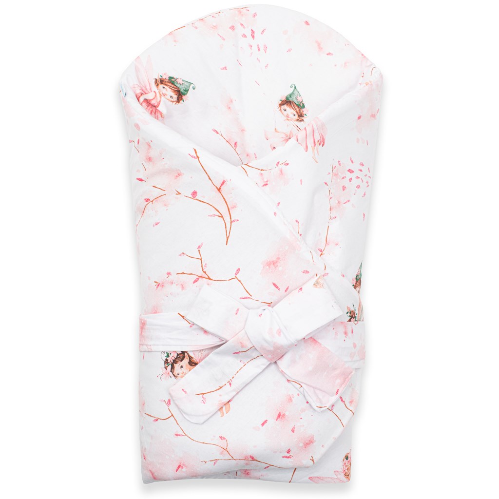 Piękny becik dla niemowląt New Baby Wróżki. Becik wykonany jest z wysokiej jakości miękkiego materiału, który zapewni dziecku przyjemne ciepło. Wypełnienie wynosi do 3 cm, co oznacza, że nadaje się na chłodniejsze dni i jest wystarczająco mocny. Piękny motyw niemowlęcy ucieszy małe oczy dziecka. Zapięcie na rzep i pasek do wiązania na kokardę.